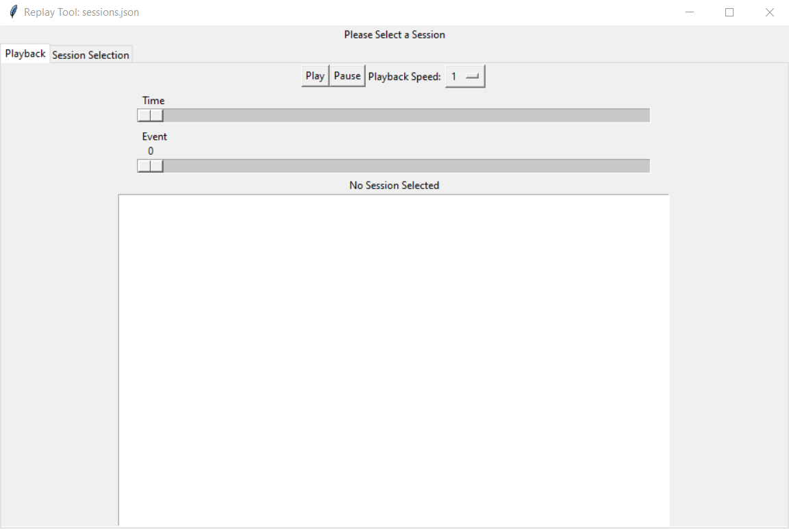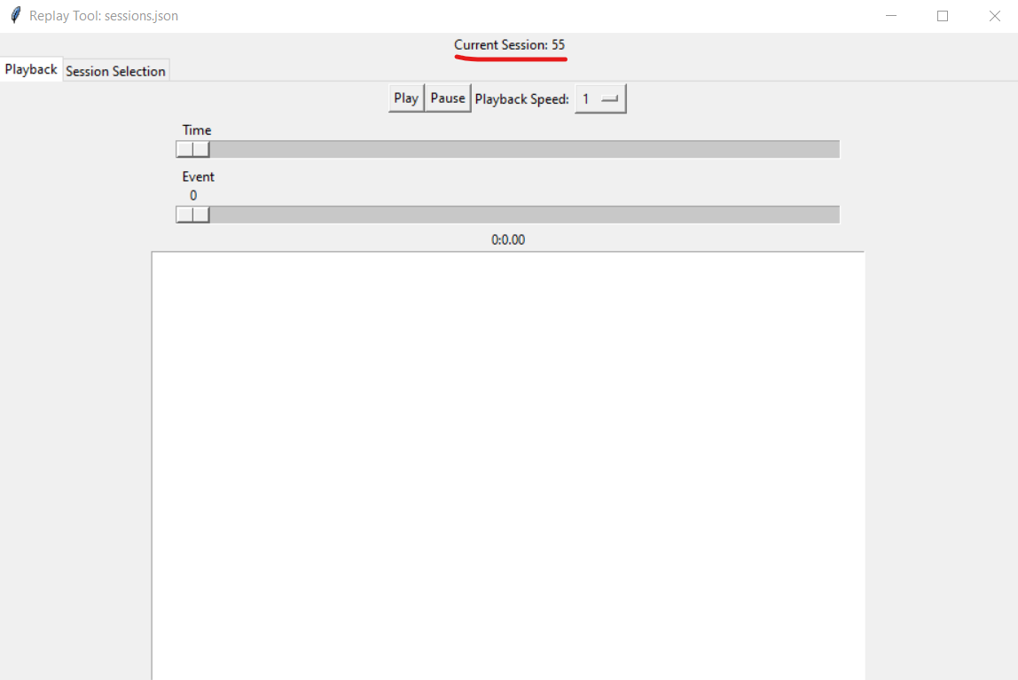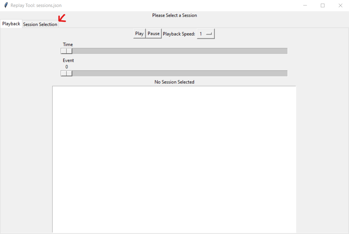 In order to start playback, you must first select a session from the file. Click on the “Session Selection” tab to open the session selection view.